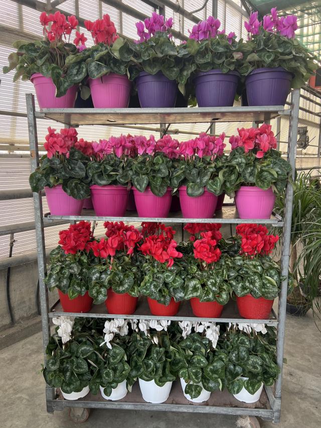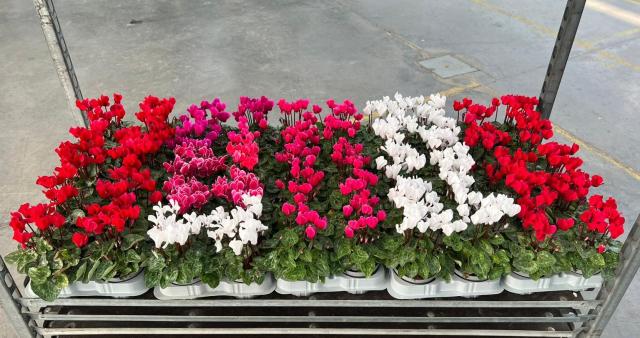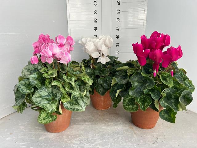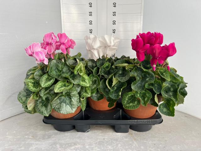 Tre colori mix nel vaso. Vaso in plastica. Boccioli ancora chiusi.