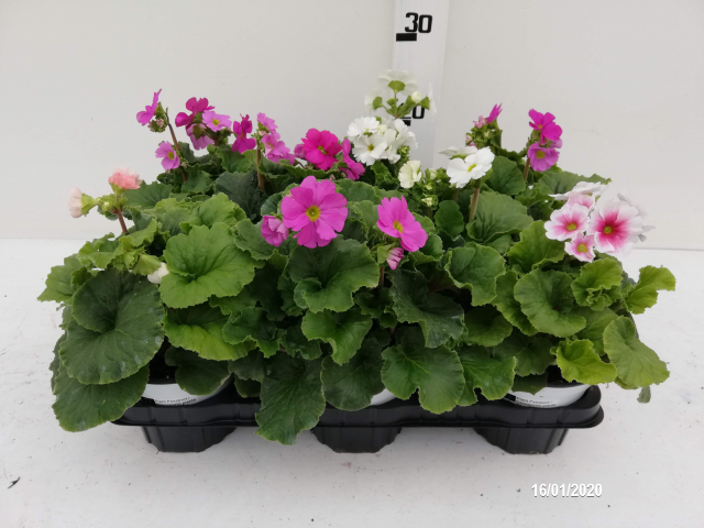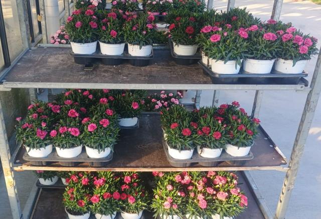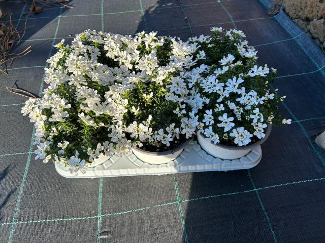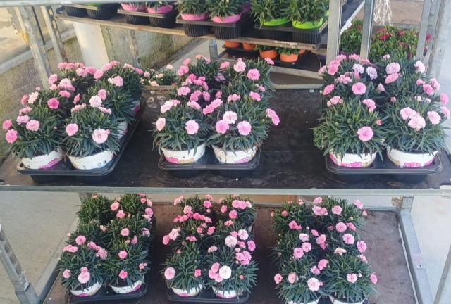 Pianale mix con contenitori singola varietà. Fiorite.