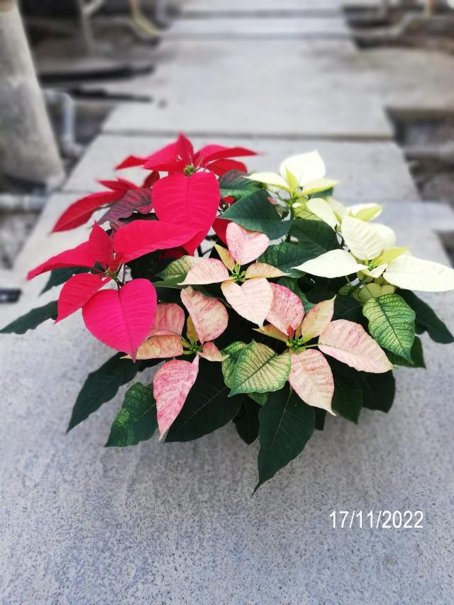 Assortimento Euphorbia Pulcherrima (Poinsettia) di produzione ligure.
