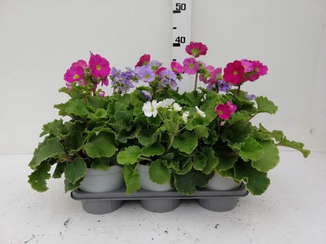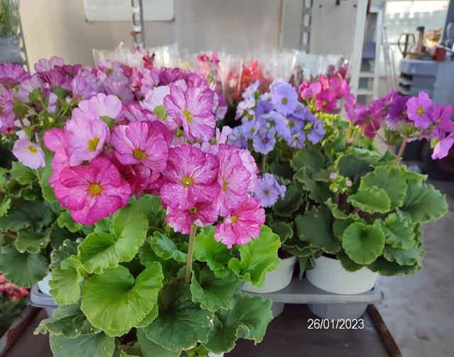 Pianale mix con contenitori singola varietà. Fiorite.